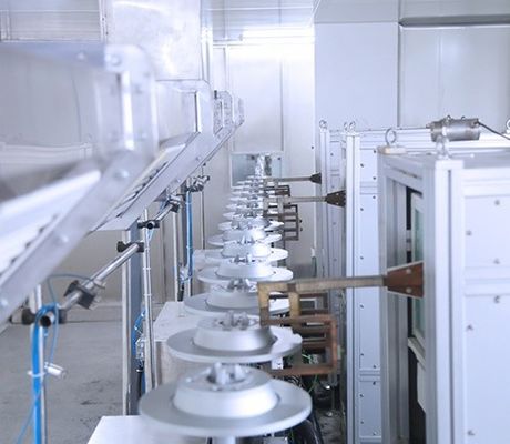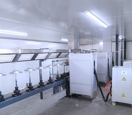 Automatic feeding and unloading system, spraying and conveying system, automatic identification system, air blow system, dry type spraying booth, spray painting robot, paint supply system, curing heating system, preheating system, temperature detection after induction heating, air cleaning system, force cooling chamber, fixture cleaning equipment, complete machine cleaning isolation room, electric control system.